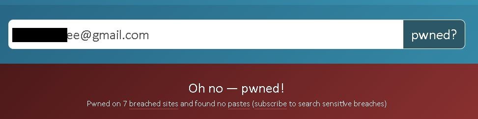 print(line)Quick search for one of the email address from returned list (and screenshot above), reveals it was compromised in 7 different breaches.