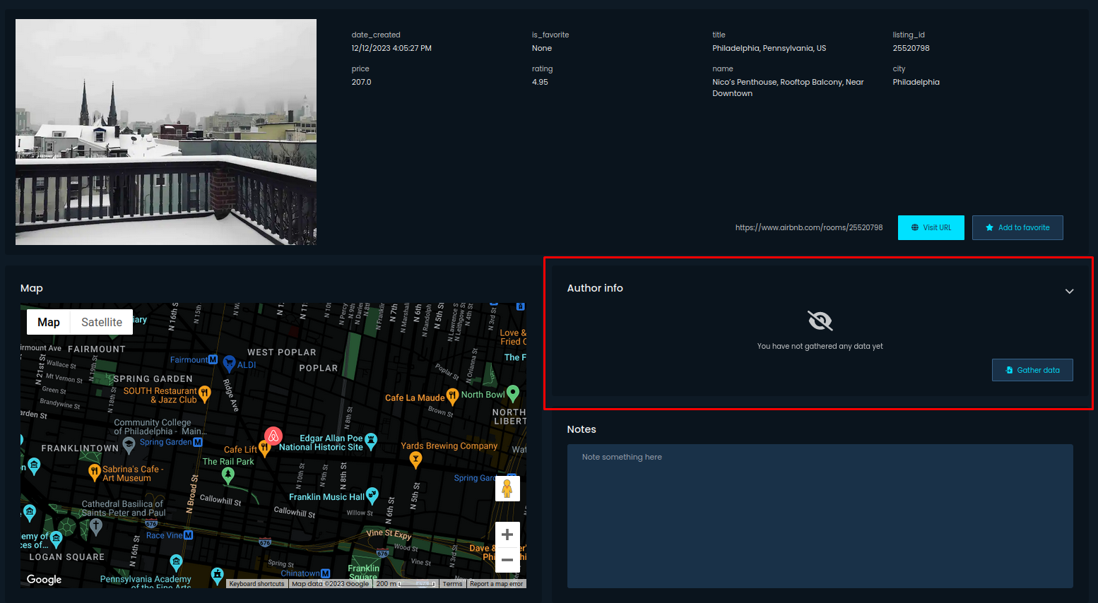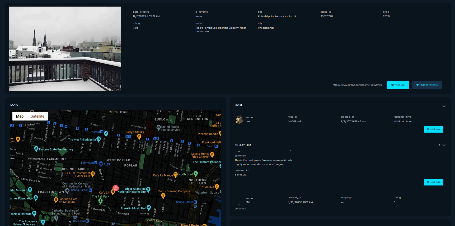 Screenshot above presents results after information about People has been gathered. We can see profile picture, when account or review was created or link to the profile. This way, we obtained all necessary details about this particular Airbnb listing, including geolocation.