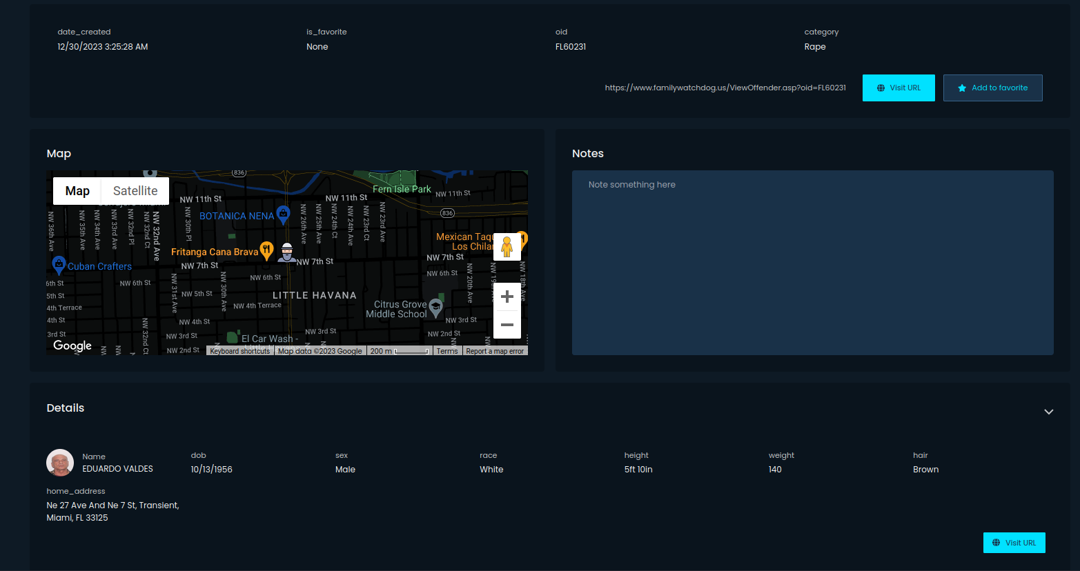 Newest, mentioned module allows you to search for sexual offenders in US, and as with previous modules, gather more information about the individual.